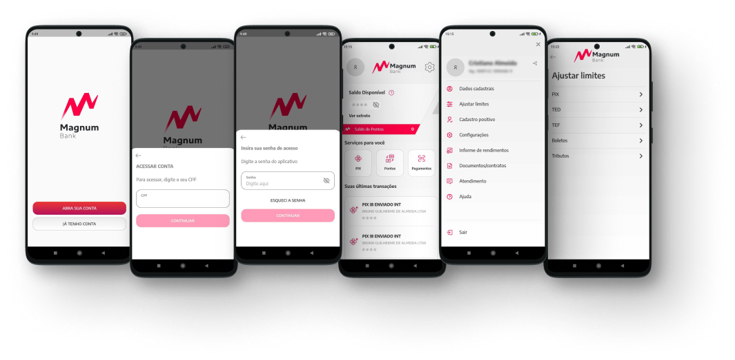 O App PJ do Magnum Bank oferece o mesmo nível de controle e segurança do Internet Banking, com a praticidade de ajustar limites diretamente pelo celular, ideal para quem precisa de agilidade no dia a dia.